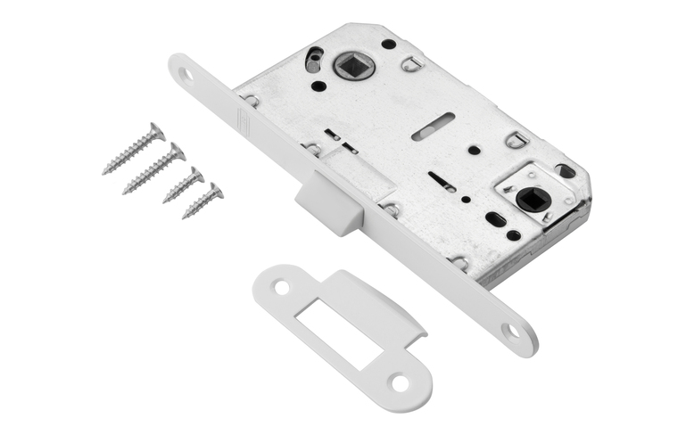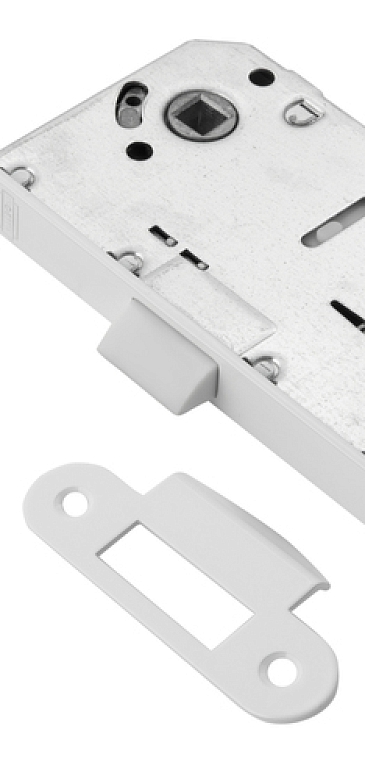 Особенности Врезная универсальная защелка из стали с язычком из ударопрочного пластика предназначена для установки фиксатора